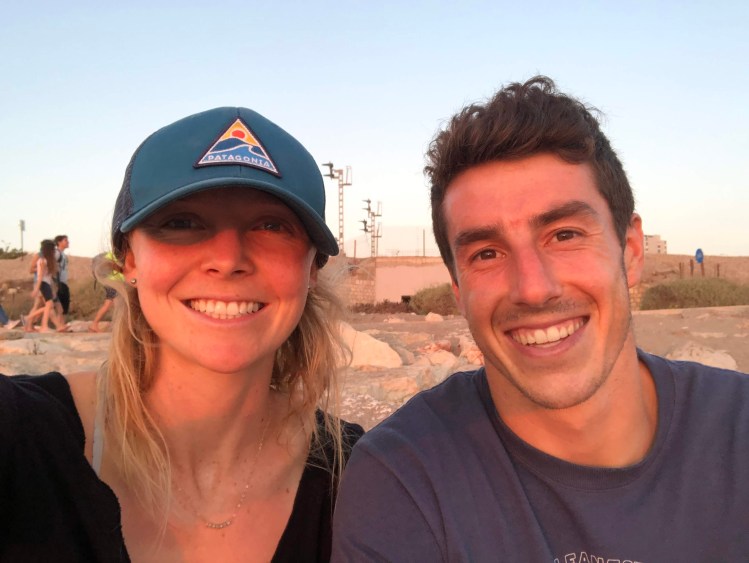 I can’t forget to mention the pita. Served at pretty much every meal and freshly baked at shops on every street. We experienced our first pita shop in the Arab sector, Wadi Nisnas, of Haifa the other day and it was unforgettable. An unassuming hole in the wall looking shop that even google maps does not recognize. As we walked by we could see the pita being made through the window and as we made our way to the door there was a line of men, women, and children trying to finagle their way to the front. Lines in Israel are apparently not really a thing. But anyways we made our way in and picked up a bag of warm pita that we watched fall off the line. We, of course, got yelled at by a man speaking Hebrew, but that was okay because we had no clue what he was saying and fresh pita was in our hands. Josh has taken pita bread to a whole new level. I have witnessed pita egg sandwiches, a pita pizza, and even a pita with peanut butter and jelly. A signature Josh creation that he named PB and JP.