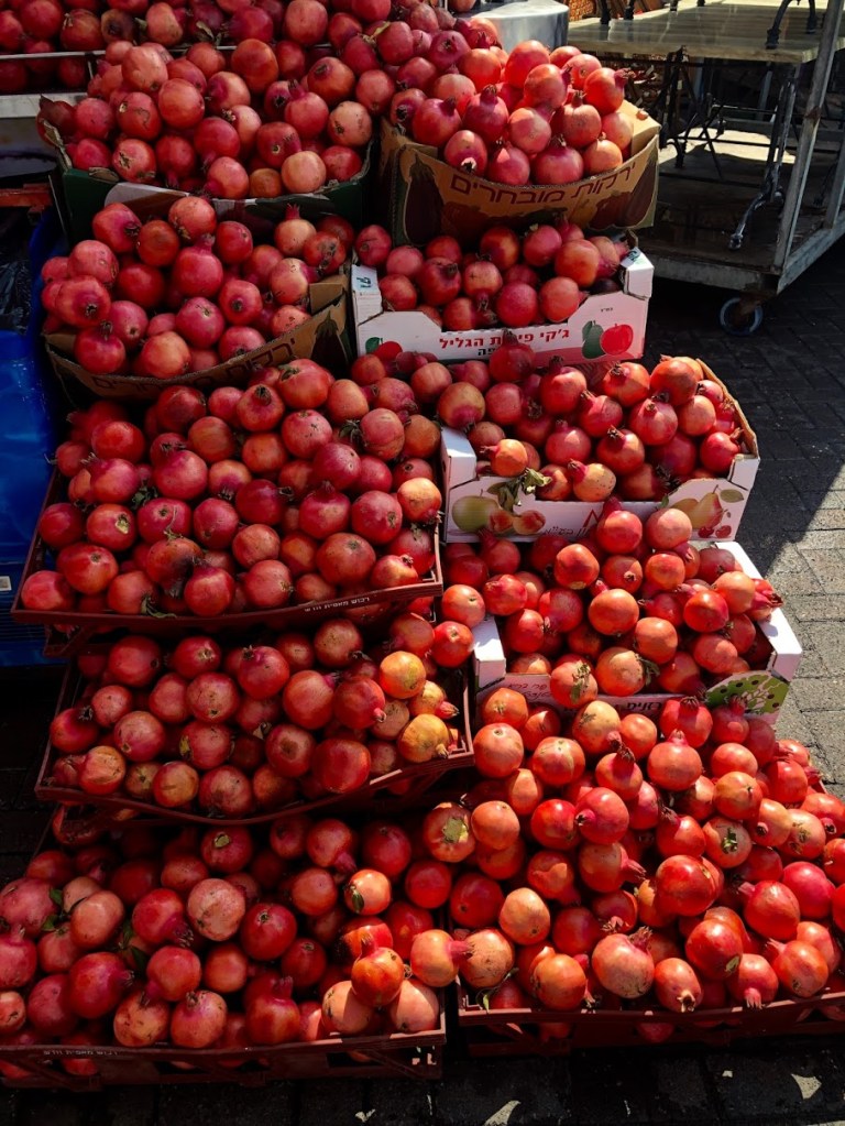 Pomegranate tree’s are everywhere, especially in the summer, and all of the markets sell fresh pomegranate juice. Stone fruits are in abundance, peaches, nectarines, plums, and some that I have never seen before. Dates here are also just better. Sold in every market and every supermarket in bulk. I even tried a fresh date, a more yellow, less wrinkly looking fruit on a stick. I can’t say I enjoyed it. I definitely recommend sticking to the dried version. There are also banana groves in Haifa that run for miles and produce a banana quite different from the ones at home. Smaller, a bit greener but delicious just in a different way.