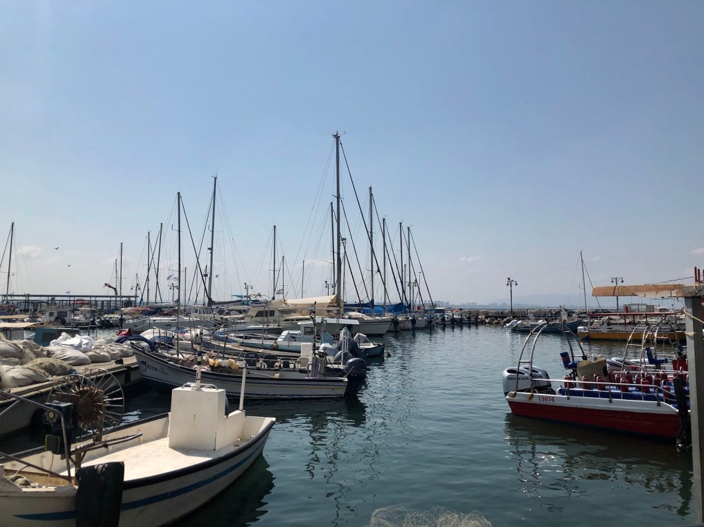 Escaping from the tunnel, we were shot out at the Akko lighthouse, a small lighthouse surrounded by the beautiful blue of the Mediterranean and the unique stone wall of Akko. At the top of the lighthouse you can walk along the fortress walls and feel as though you are a Crusader looking out across the waters for oncoming enemies. Or you can witness the jet boats as they carry screaming tourists back and forth. Along the fortress walls we made our way to the port, a small little marina in comparison to Haifa. It has a special charm that is a combination of rich history and local business, as the fishermen unload their daily catches, locals try to get tourists to take a trip on their boats, restaurants carry in the produce from the market, and the waves calmly hit the dock.