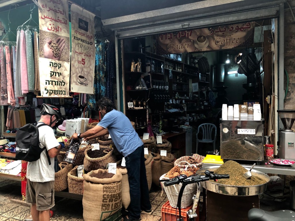 Akko boasts two incredible markets. The Turkish Baazar, lined with art galleries and casual dining spots that smell incredible, and the Old City Market. The Old City Market is one of my favorite shuks in Israel. It winds through the cobblestone alleyways, where you can watch Arab pastries being crafted, fish being brought in from the boats, and locals picking out the most vibrant spices and produce. As a coffee aficionado, I made sure to stop at the local coffee roaster in the center of this market. Here I was able to meet the owner, Deeb Bader, and learn about the different types of coffee offered in Israel. The most intriguing was “white coffee” which was a mix of half roasted coffee beans, cinnamon, and cardamon. Deeb kindly let me smell all of the different types of coffee beans and even suggested a mixture to make the best cup of medium roast coffee at home. He threw this mixture into his coffee grinder, handed me the bag of warm freshly ground beans, and I was off on my way. Deeb is a master, his mixture was genius.