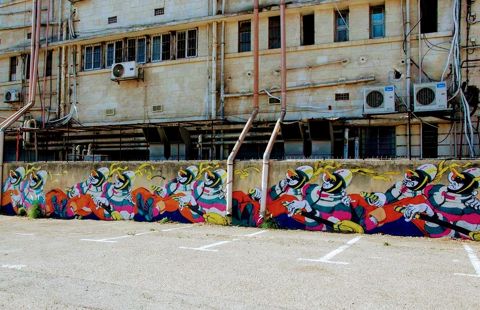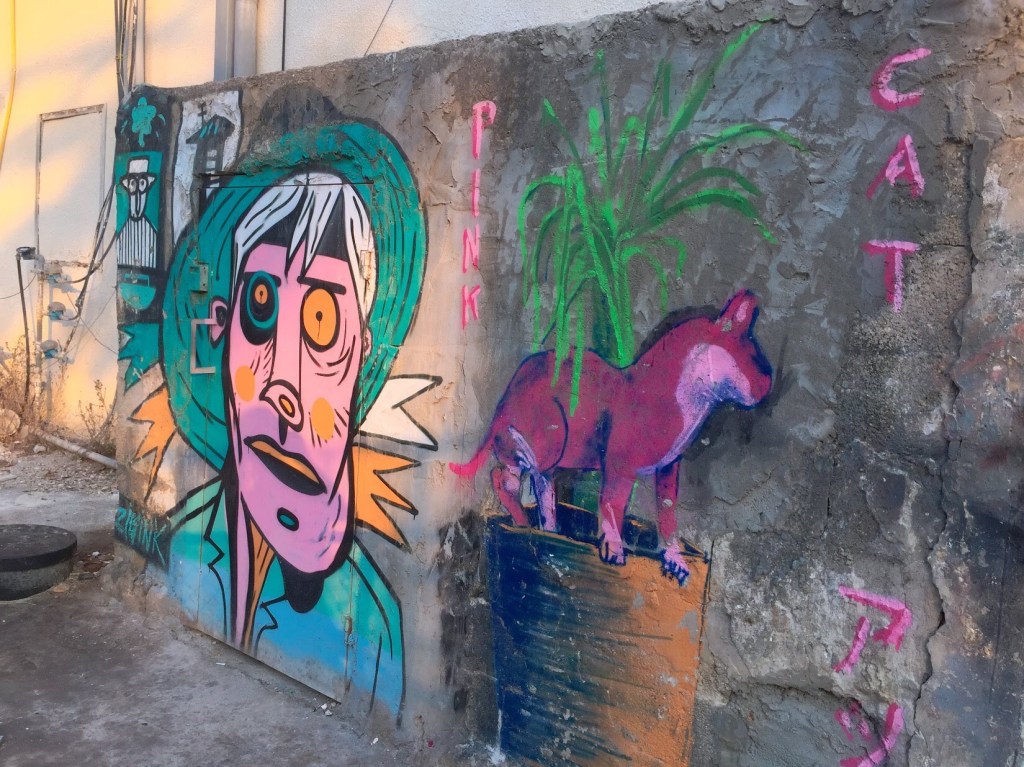 With a little research I found out that what I was seeing on the streets was a gallery created by a roster of renowned and respected artists. The Walls Festival is an international street art festival that takes place in developing urban neighborhoods and displays large-scale murals. The mission of the Walls Festival is to create a forum for discussion, cultural exchange and creativity, and to bring to life otherwise neglected and disenfranchised parts of cities. The neighborhood of downtown Haifa is located adjacent to the port and in an area of the city that was once seen as dangerous. Today, Local businesses and leaders are passionately trying to beautify this area of the city and revamp it as an up and coming hip spot.