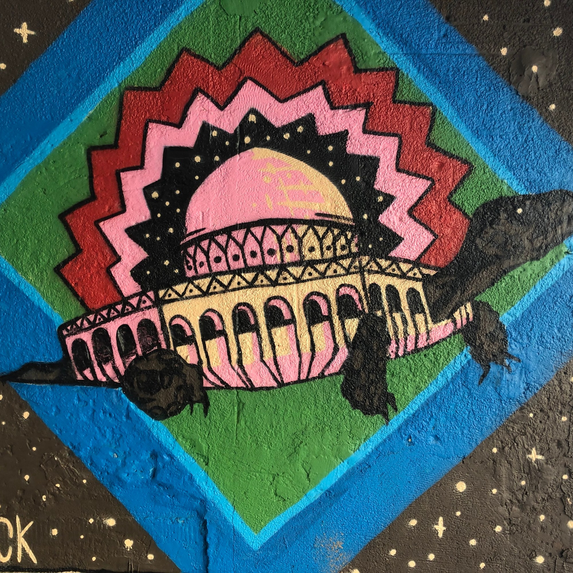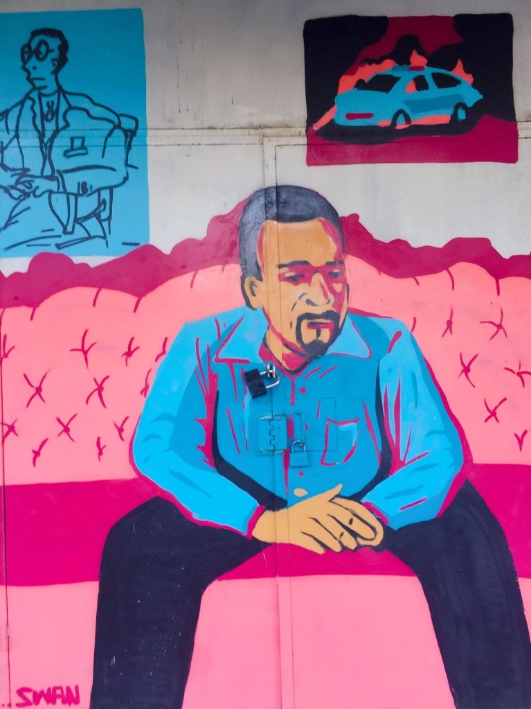 #12, Three murals done by different artists are displayed in a courtyard at the southern end of the neighborhood.