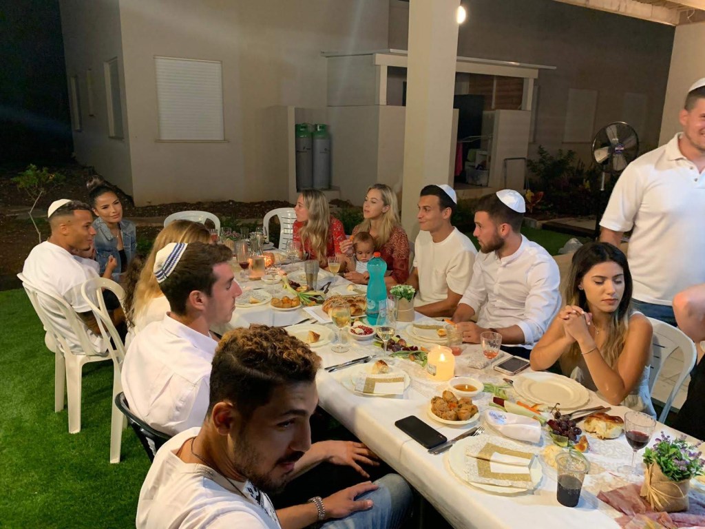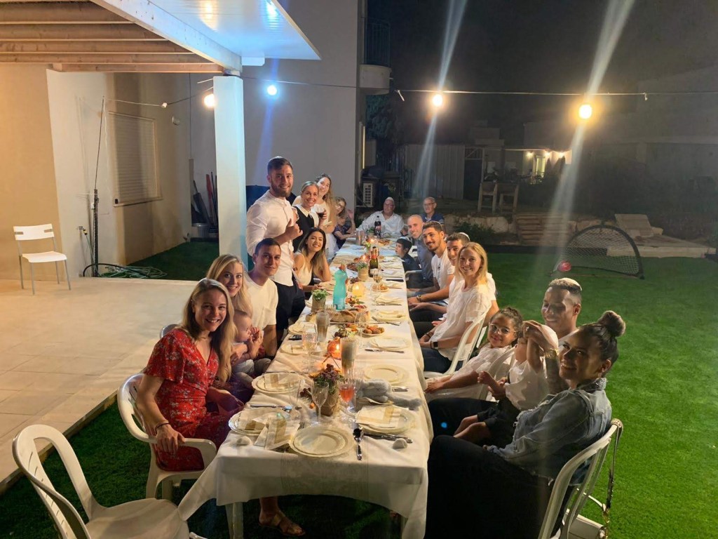 Rosh Hashanah, the Jewish New Year, began at sundown on Sunday, Sept. 29 and ends at sundown on Tuesday, Oct. 1. We had the pleasure of celebrating the Jewish new year with an incredibly welcoming family in the Kibbutz of HaHotrim. The celebration was held right near the Maccabi Haifa training field at the childhood home of one of Josh’s teammates with multiple generations of their large family. This was my first Rosh Hashanah celebration and I wasn’t sure what to expect, but it was certainly a memorable one. Upon the eve of this festive holiday I quickly learned how to say “happy new year” in Hebrew. It was almost as if everyone I crossed paths with muttered “shanah tovah” and the whole world was paused to wish each other a sweet new beginning. We also learned that tradition calls for a white shirt or top, so it was quite the white affair, though some of the kids shirts were the color of grape juice by the end of the night.