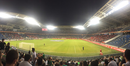 In the game, we put up a good fight, but a first-half red card and penalty kick against us severely hurt our chances. The game ended in a 3-1 loss, but I’ll never forget the experience of my first EUFA match, even as just a bench player. The stadium, the crowd, and the atmosphere of the game felt entirely new to me. A sea of 26,000 constantly jumping, chanting, and whistling throughout the game, and about 600 of our own fans who made the trip all the way from Israel to cheer, bang drums, and light-off smoke bombs in the stands.